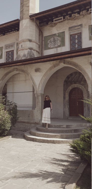 Вообще Ялта и Бахчисарай не входили в программу нашу .Мы максимально решили не напрягать детей и больше пассивно отдыхать чем активно. Но моя непоседливость не давала мне покоя.. Вместо запланированных 5дней в Орджоникидзе и оплаченных мы там остались на 3 дня.А потом мне надоело сидеть в одном и том же отеле ,несмотря на вылазки в Коктебель и Судак и я заявила всей нашей честной компании,что мне надоело и хочу увидеть что то новое .Муж только вздохнул.Остальным было все равно. Стала в интернете искать отель либо в Ялте,либо в Бахчисарае.Конечно номера сложно было найти в последний день или было очень дорого. Чтобы минимизировать расходы и потери решили с утра прибыть в Ялту ,все посмотреть и оттуда переместиться уже в Бахчисарай на ночевку ,а второй день посвятить осмотру этого города и достопримечательностей и двигаться дальше. Обзвонила несколько отелей ,по интернету прошлась и только один отель понравился именно чистотой плюс позвонила и конкретно спросила насколько у них чисто она дала голову на отсечение ,что я буду в восторге.Ну что же..не будет же она врать и платить головой за это?! я ей поверила на слово ,забронировала и утром мы выехали в сторону Ялты. ПРо Ялту я вам рассказывала.После Ялты и Ай-Петри мы двинулись в Бахчисарай. ПС: если кому интересно при выезде из эллинга нам не вернули деньги за те дни которые были проплачены . Ну да ладно Никто не просил меня передумывать..