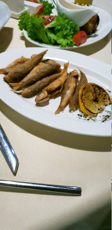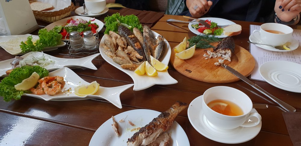 но кормили очень вкусно правда дорого ... в основном там " в ходу" барабульки ,ставридка,кефаль ... чаще всего встречается эта рыба..