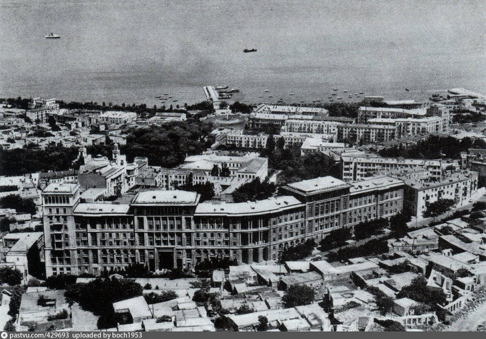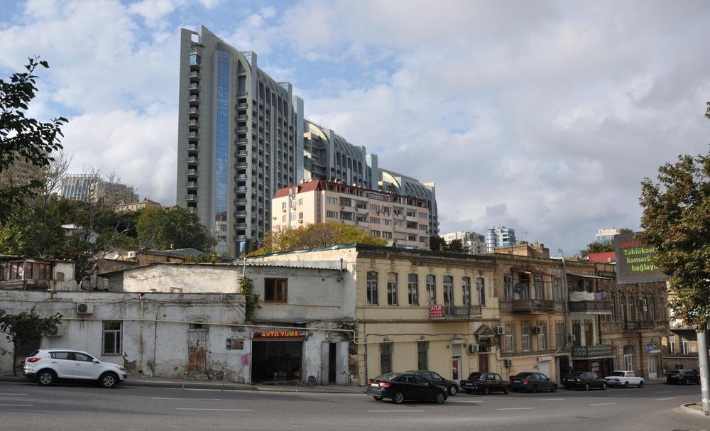 Мне бы хотелось начать с более раннего времени - с конца 19-го - начала 20-го веков. Да, нынешний Баку как он выглядит - только в центре был почти таким же, за исключением кардинального изменения улиц и памятников, фасадов метро, надстройки этажей домов в центре, и вообще своё строительство с обликом светского города за чертой Ичери Шехер Баку начал только лишь в 19 веке. Город наш строили лучшие польские - польско-еврейские, немецкие, итальянские, шведские и конечно же лучшие азербайджанские, русские, украинские и двое армянских - зодчие, Европейский стиль смешался с восточным. Здесь снимали все лучшие киноленты советского периода - "Бриллиантовая рука", "Тегеран-34", "Человек-амфибия" и другие. Про культурный двойной слой под Ичери Шехер я не знала, но это нужно было предполагать, ведь городу около тысячи лет! Да и крепости были две, и стена Ичери Шехер - восточная снесена, а вообще крепость была без зубцов - и что интересно - крепостные стены были в два ряда! Снесли внешнюю стену, которая проходит по Губернаторскому саду. Город перетерпел три переименования улиц, и площадей, сносы старых кладбищ, строительство и снос огромного с 17 этажку православного Александро-Невского собора по проекту Иоганна Марфельда при инженерном содействии Юзефа Гославского около Старого Пассажа, по улице М. Мухтарова где сейчас три школы им. Бюль-Бюля, №190 и №189, который был виден с любой точки Баку, и прекрасного католического собора Девы Марии по проекту Юзефа Плошко на углу Каспийской и Меркурьевской - ныне на углу ул. Рашида Бейбутова и ул. Дилары Алиевой - где сейчас стоит клуб Дзержинского. Если взглянуть на фотографии Баку конца 19 века и начала 20-го,то очень трудно узнать город, как он сильно изменился за 130-150 лет. Один ряд крепостных стен был убран и достроены зубцы, Девичья башня была ниже, ей был достроен ещё один этаж. Но многие места по известным ориентирам всё-таки, узнать можно. Например, двухэтажный дом с вывеской: "Аптека Чишковскаго", около которого стоит запряжённая двумя лошадьми, карета - будущий музей Низами, которому архитектор Никитин достроил третий этаж, а потом в 50-е годы началось изменение фасада под скульптуры деятелей азербайджанской литературы.