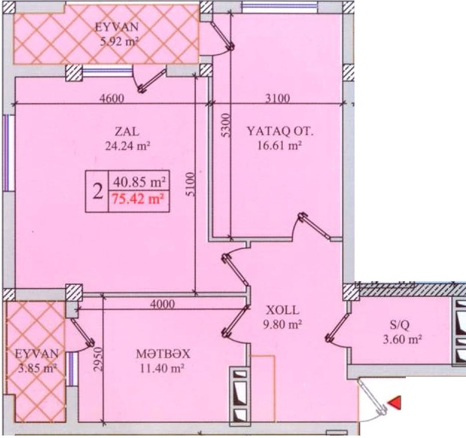 Qonşu mənzil ilə divarın qalınlığı - 20sm