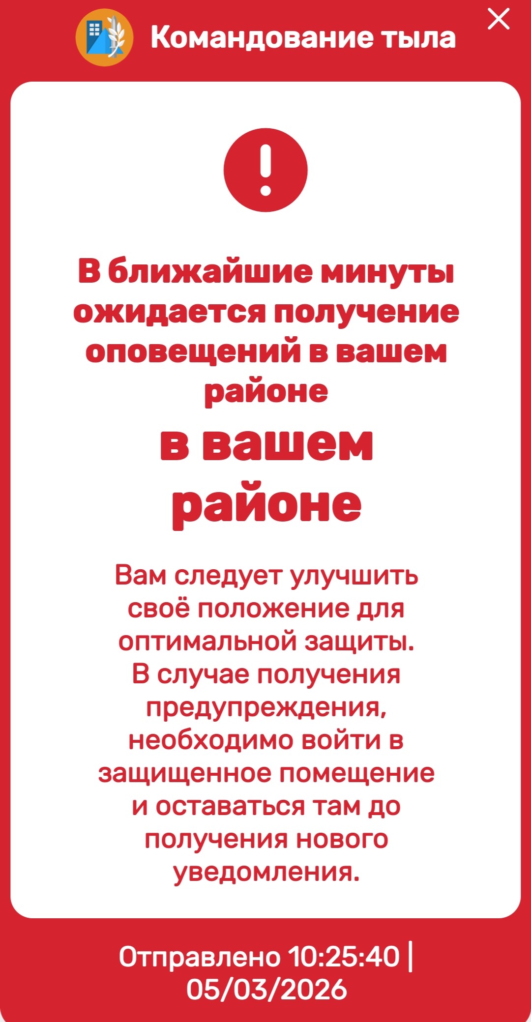 BAKILI Опубликовано: 10 часов назад Жалоба Share Опубликовано: 10 часов назад Короче Иран обнуляют, а они как упрямый осёл продолжают гнуть свою. Сколько денег потратили и всё напрасно... Вчера на работе получил такое сообщение. Его получают все у кого есть смартфон. Потом оказалось, что ракета пролетела прямо над головой в сторону центра... Было бы хорошо, чтобы и в Азербайджане ввели такую систему. Цитата Азербайджан / Azərbaycan / Azerbaijan Ссылка на комментарий Поделиться на других сайтах More sharing options...