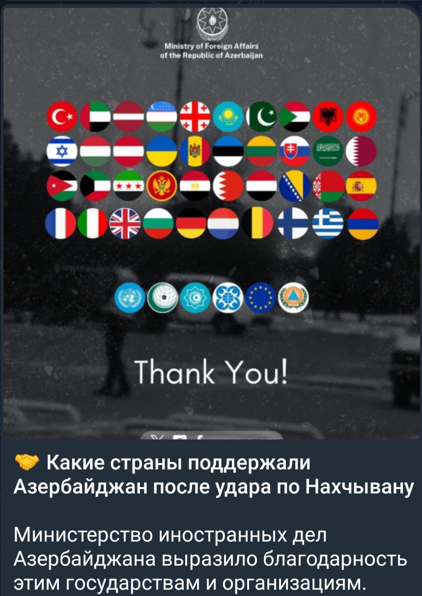 laziale Опубликовано: 7 часов назад Жалоба Share Опубликовано: 7 часов назад 17 часов назад, Anis сказал: Россия вроде тоже молчит - мне, по крайней мере, не попадалось их официальной реакции. Россия повела себя паскудно, что ей и её прихлебателям свойственно исторически. В то время как весь цивилизованный мир показал поддержку Азербайджану, эта недоимперия решила отмолчаться 2 Цитата Si inverecundus nimis es, nihil est infectum Ссылка на комментарий Поделиться на других сайтах More sharing options...