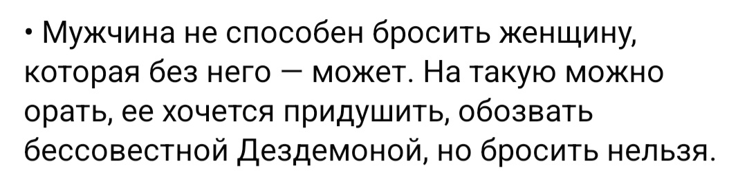 Ари Опубликовано: 2 часа назад Жалоба Share Опубликовано: 2 часа назад 46 минут назад, BOSS сказал: Что за дела? Который год тут проливается кровь из-за того, что женщина не должна терпеть всякие делишки мужчину, если терпеть то ради деньги) Никто не говорил,что ради денег нужно терпеть Говорили,что если терпят ради чего то ...это еще можно понять 46 минут назад, BOSS сказал: тд. Гендеризс, фригиднизм, ня билим няизм нолду? Вот все вы тут, женщины. Проясните это, я посмотрю со стороны и уже начну открыть более элегантные темы, мол «всё таки не всех женщин перестрелять надо» и тд. И вообще откуда знать мужчине, что женщина без него может или нет) А разве непонятно? И так понятно кто может,а кто не может без мужчины.. Цитата Ссылка на комментарий Поделиться на других сайтах More sharing options...